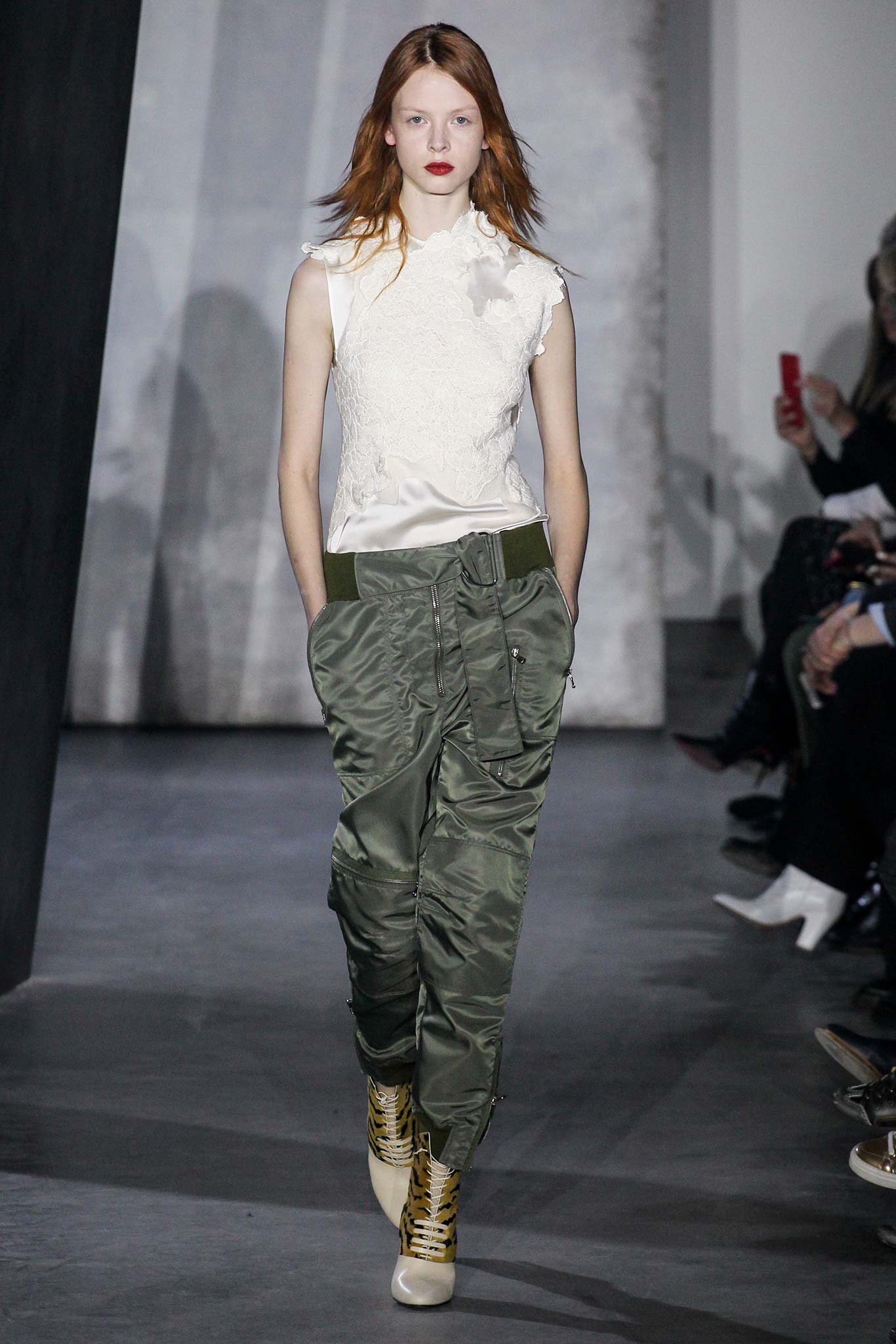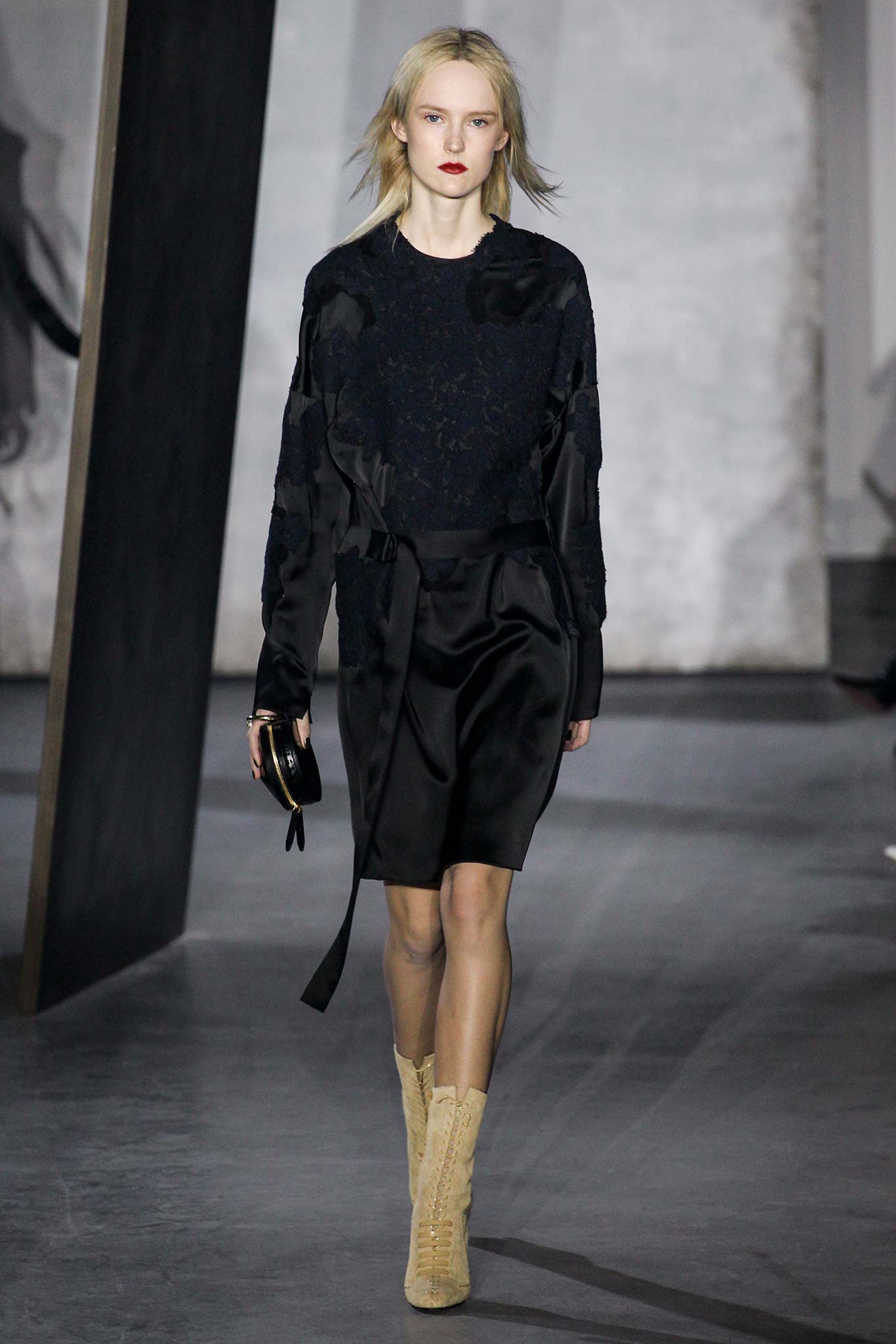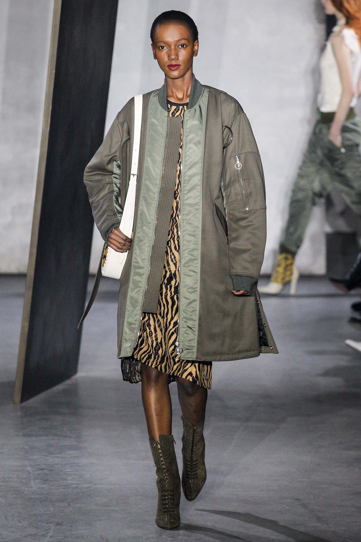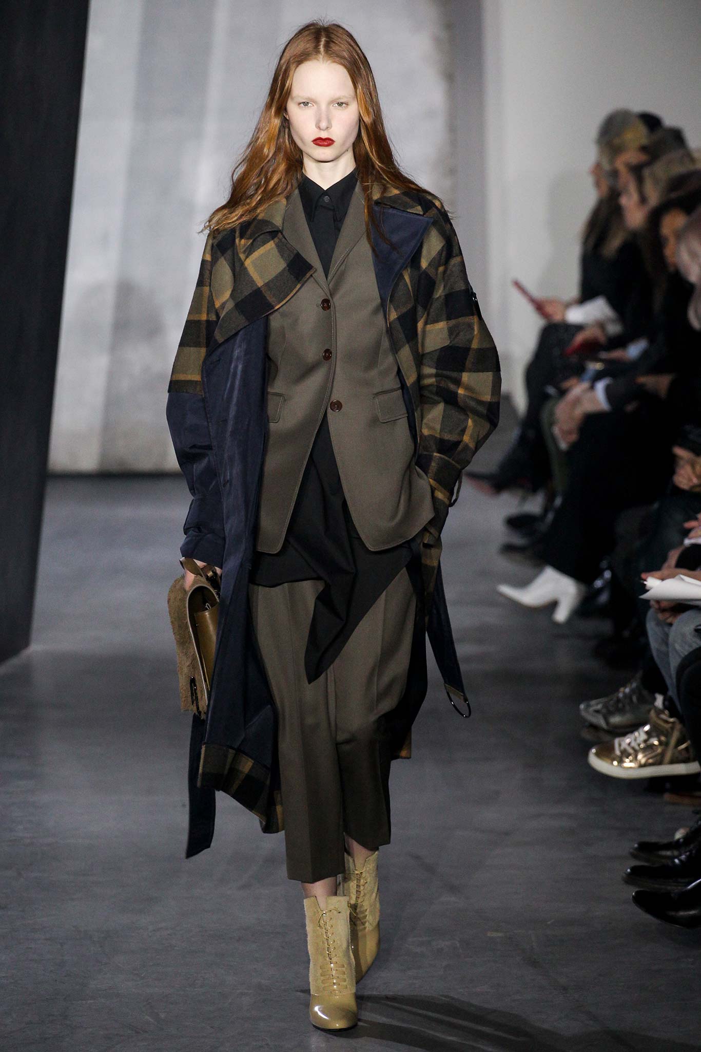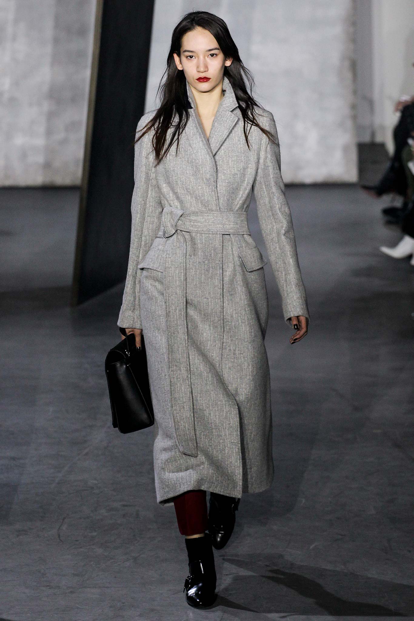 That grey coat is to die for. And overall again a very wearable look with a sporty feel to it. Pity about the ghostlike make-up.