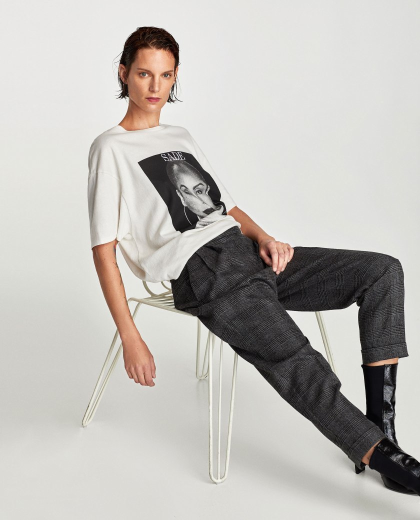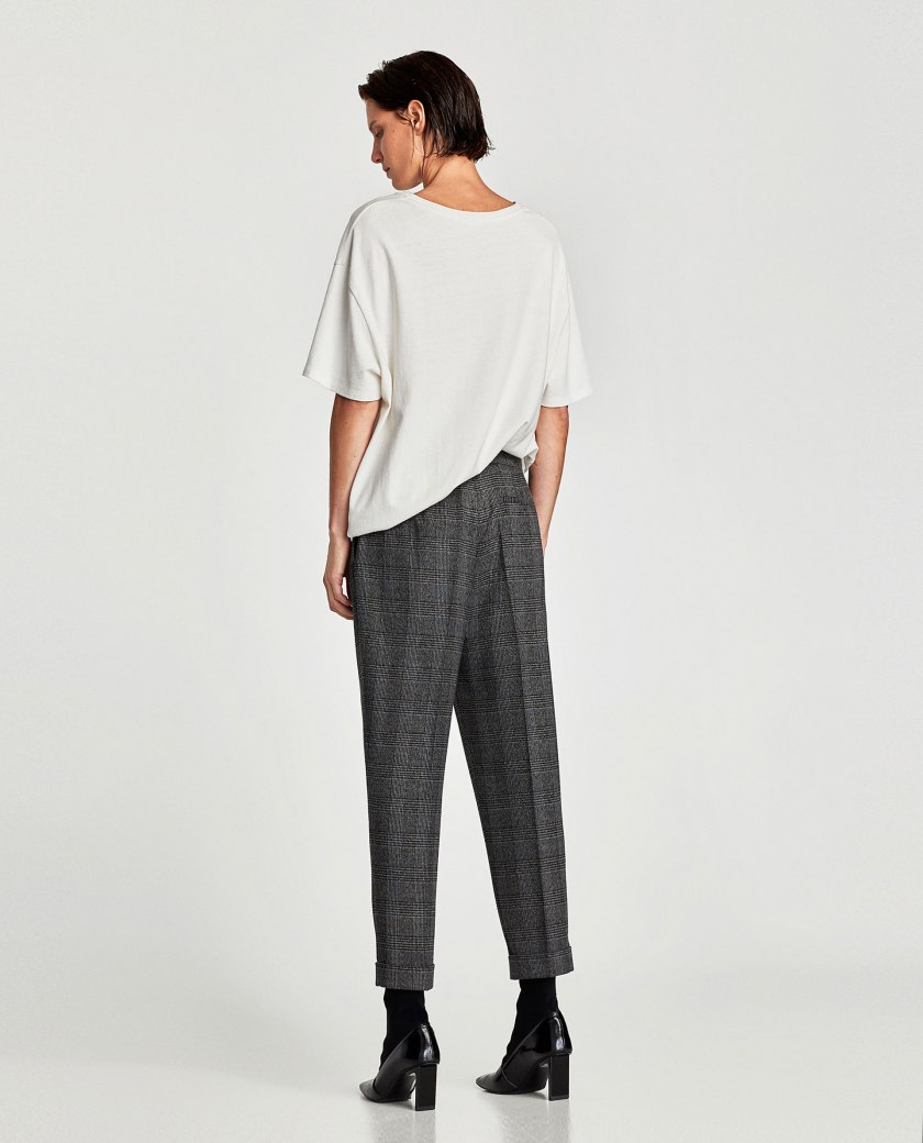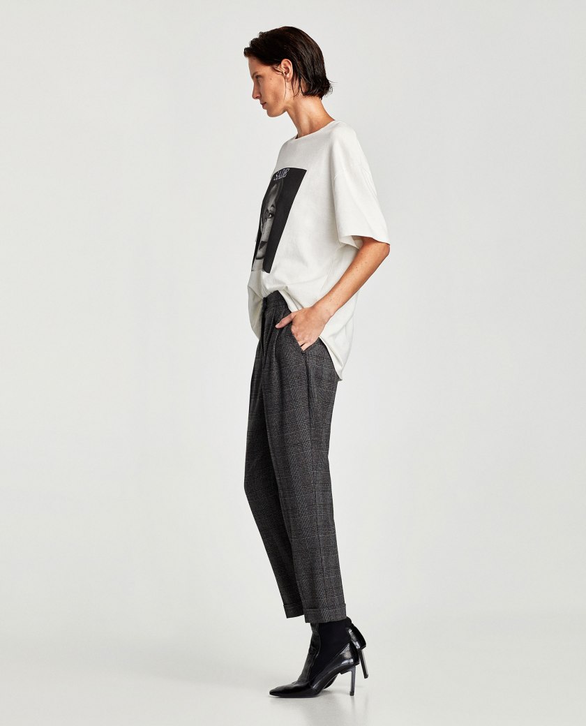 Plaid trousers at Zara, t-shirt nowhere to be found on the website